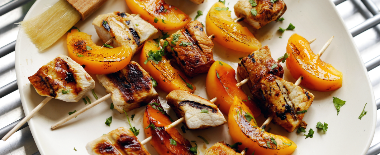Spiedini di maiale e pesche